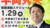 明日 1月28日(水) は、周南市・岩国市を中心に、朝立ちおよび街頭演説を行います。