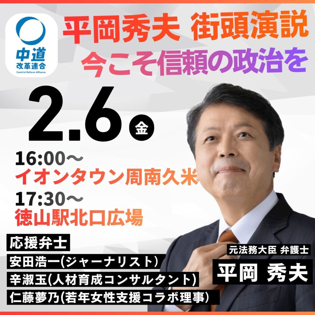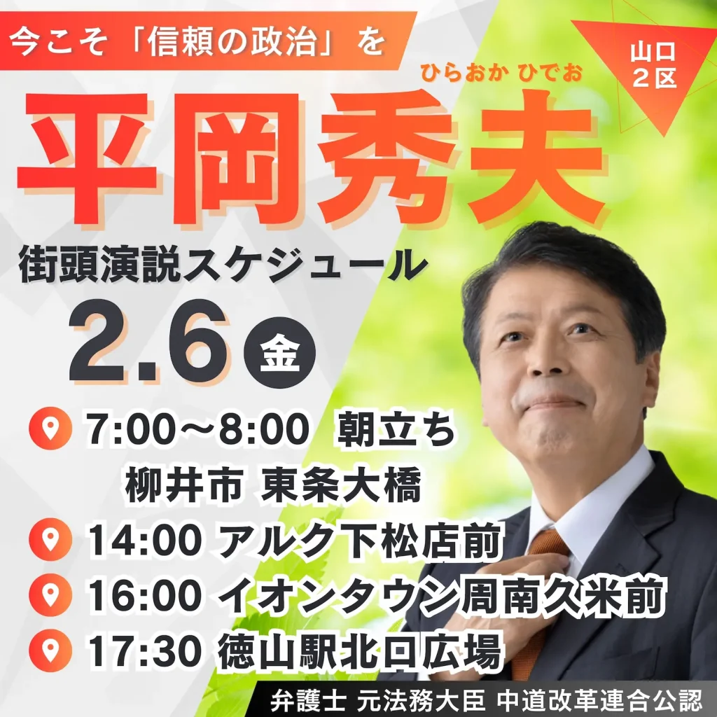 明日は早朝の柳井市からスタートし、下松市、そして周南市へと伺います。お近くの皆様、ぜひ直接、私の声に耳を傾けていただければ幸いです。